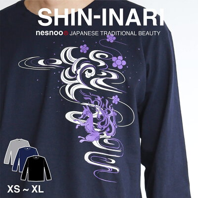 新稲荷 和柄 長袖 tシャツ 秋物 ロンt ファッション 黒 おしゃれ メンズ レディース S M L XL ネスノ 秋服 秋 秋服 冬 ブランド プリントtシャツ オリジナル ギフト 模様 イラスト 絵 デザイン 和風