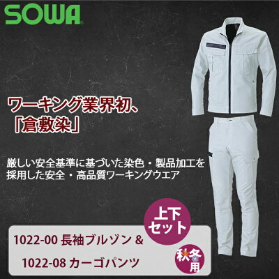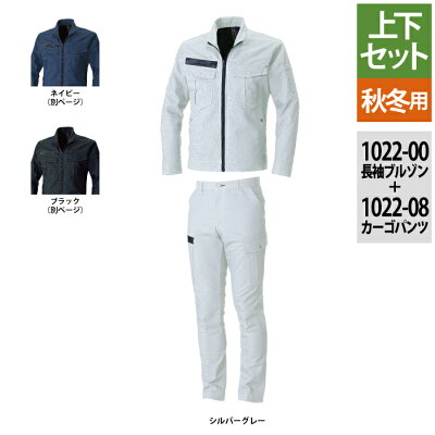 作業服 オールシーズン SOWA 桑和 上下セット 1022-00 長袖ブルゾンS〜3L と 1022-08 カーゴパンツ S〜3L シルバーグレー 作業着 作業ズボン