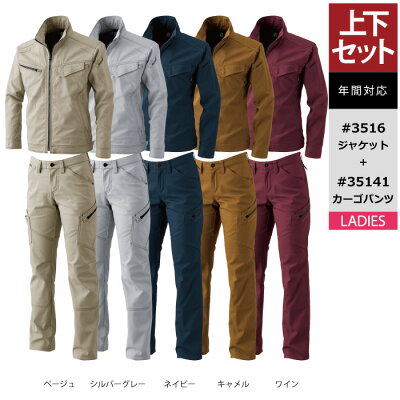作業服 オールシーズン 藤和 TS DESIGN 上下セット 3516 ハイブリッドコットンジャケット & 35141 ハイブリッドコットンレディースカーゴパンツ SS〜3L 作業着 作業ズボン 女性用
