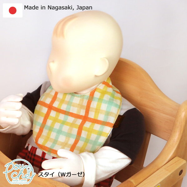 spec サイズ 25.0×18.5(cm) 首回り 約25(cm) 素材 表生地:国産Wガーゼ(綿100%) 裏生地:パイル生地(綿100%) 留め具/プラスチックホック 生産国 日本 新製品ぞくぞく!母子手帳ケースページへ 製品はお客様専用にお作りし、長崎県の自社工場から直接お客様へお届けいたします。