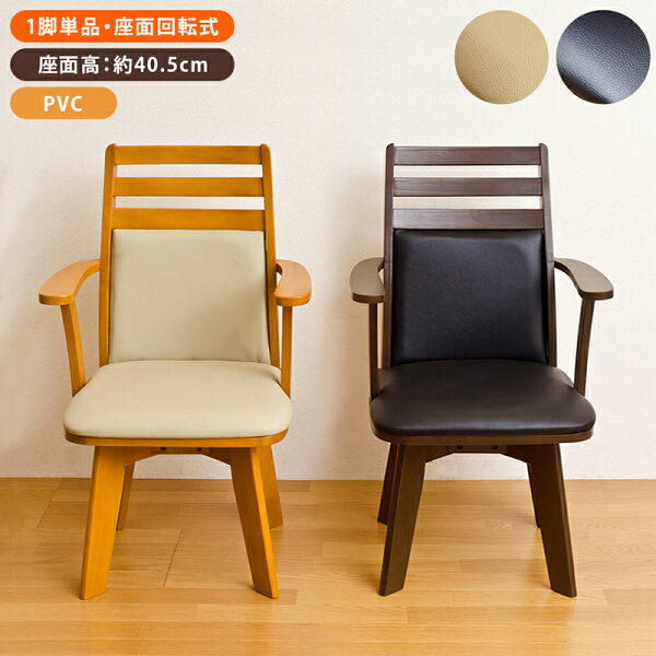 肘付きの機能的なダイニングチェアー! 座面回転式で座りやすく、立ち上がる時も肘付きなので楽々なダイニングチェアー。