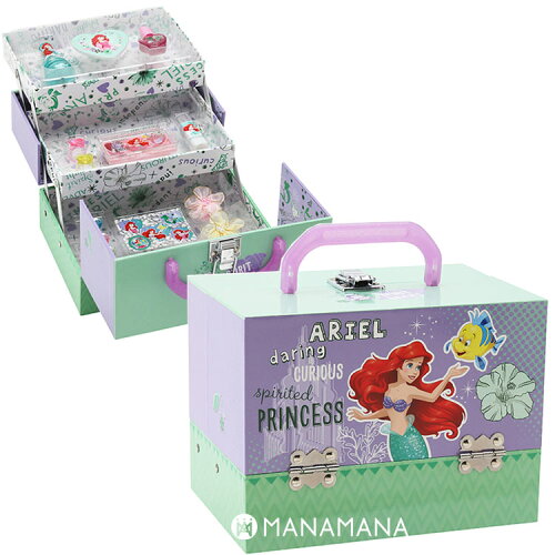 特徴 キッズたちにとっても好評のメイクコスメセットに大人気! アリエル ディズニープリンセス が登場! ふたを開けると、豪華な三段セットが登場♪
